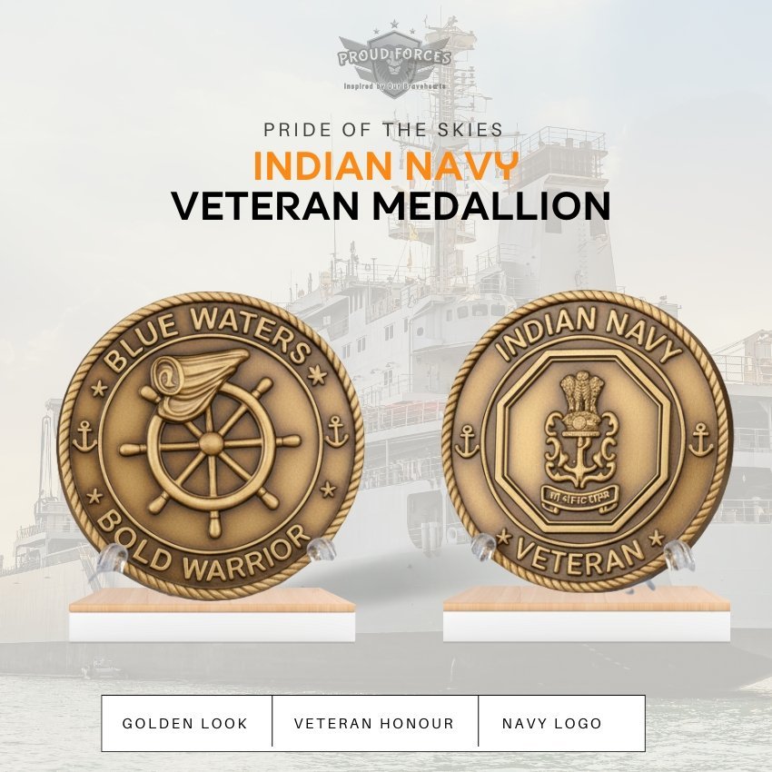 & Free ShippingThe Indian Navy Medallion (2.5 Inch, Golden) by Proud Forces is a premium commemorative piece created to honour the courage, valour, and service of those who safeguarded the nation at sea. Crafted with a rich golden finish, this medallion represents pride, strength, and the enduring legacy of the Indian Navy. A meaningful keepsake for veterans, defence supporters, and patriotic gifting.