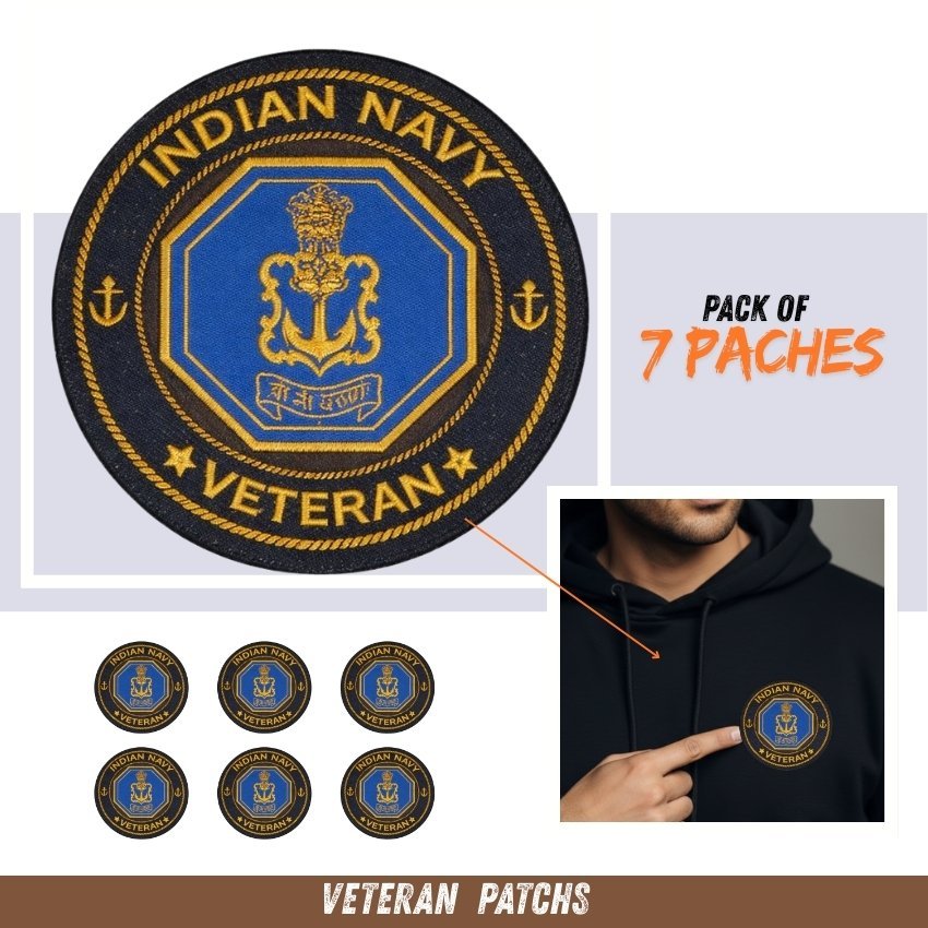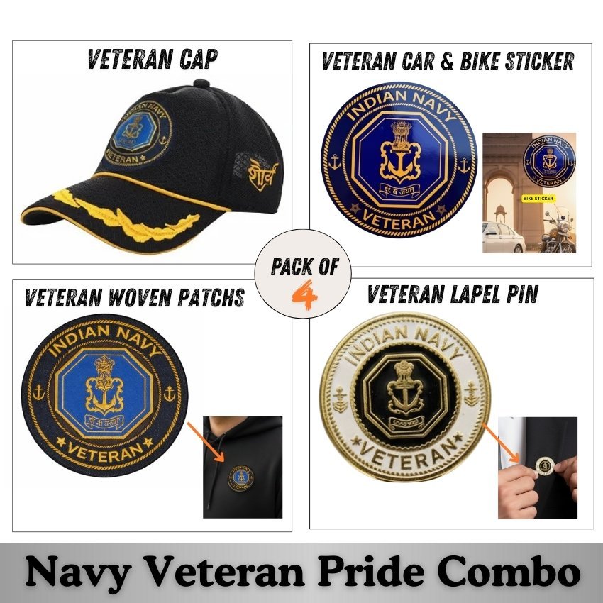 Indian Navy Officer Veteran Cap, Stickers, Patch & Pin Combo Pack