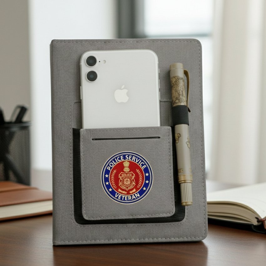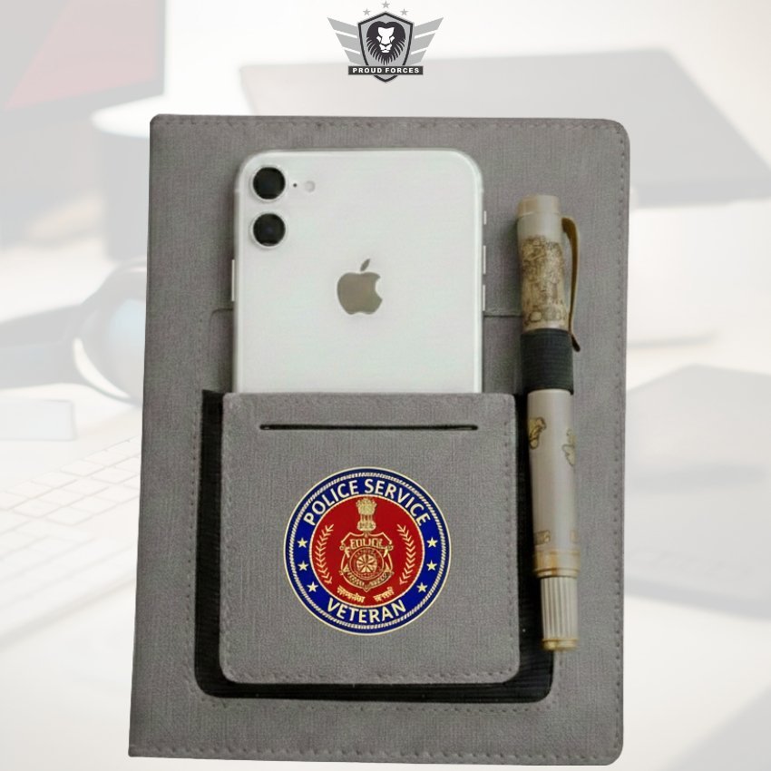The Proud Forces Police Services Veteran Office Notebook with Phone & Pen Holder is more than a notebook—it reflects discipline, responsibility, and years of service dedicated to public safety and the nation.