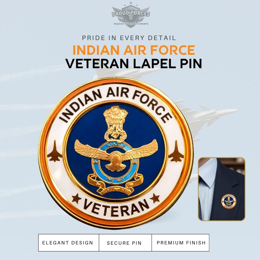 The Proud Forces Indian Air Force Veteran Blazer Lapel Pin blends elegance, respect, and patriotic meaning, making it a timeless tribute to service in the skies.