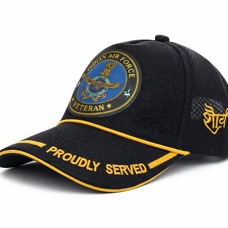 With its classic black colour and “Proudly Served” insignia, this cap blends elegance, comfort, and honour, making it a meaningful tribute to the legacy of the Indian Air Force.